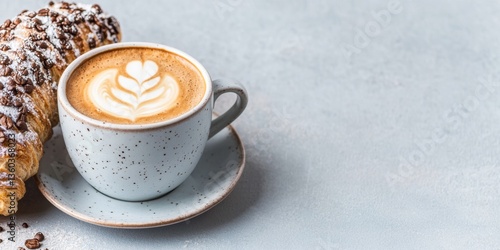 Mindful Morning Aesthetic Artisan Ceramic Latte with Gourmet Croissant - Specialty Coffee Culture and Contemporary Breakfast Lifestyle Inspiration