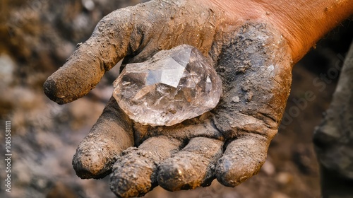 miner, hand, holding, raw, diamond, dirt, covered, texture, excavation, gemstone, rough, mining, earth, geology, mineral, natural, transparent, shiny, gem, deposit, unique, rock, surface, closeup, manual, labor, industry, men at work, raw material, quarry, extraction, nature, find, treasure, glimmer, valuable, field, rugged, grit, handiwork, skill, craftsmanship, artistry, organic, uncut