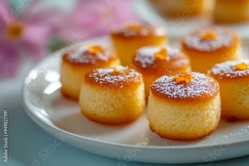 Mini Pancake Bites, Small, sweet cakes cooked in molds, often served half-cooked for a gooey center
