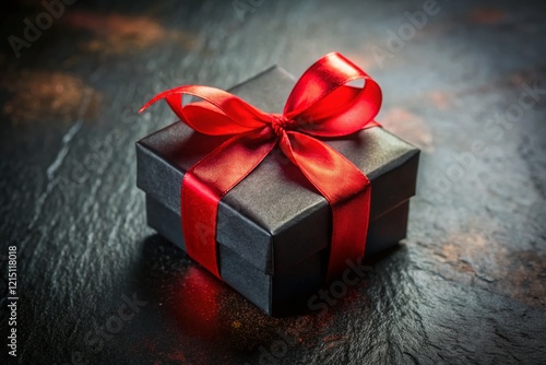 gift box, red ribbon, dark background, miniature, diorama, present, christmas, birthday, holiday, celebration, wrapping, bow, ribbon, gift, package, surprise, luxury, elegant, texture, photo, image, background, festive, special occasion, black, red, dark, gift wrapping, red bow, christmas gift, birthday gift