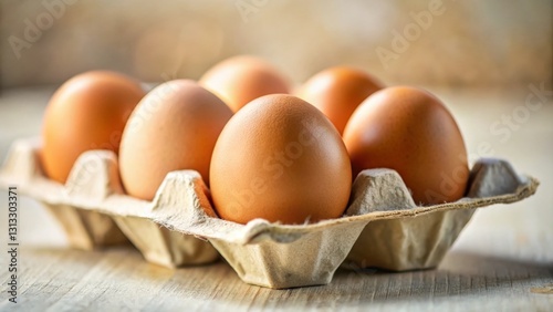 Miniature Brown Eggs in Cardboard Carton - Tilt-Shift Photography