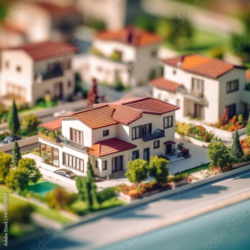 Miniature Contemporary Neighborhood with Tilt-Shift Focus, generative AI