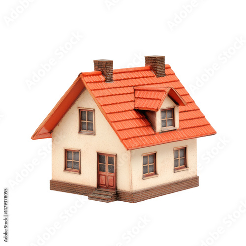 miniature, house, model, home, dwelling, residential, property, real estate, architecture, building, exterior, facades, roof, terracotta, orange, red, brown, beige, cream, window, door, chimney, gable, small, scale, design, illustration, rendering, three-dimensional, detail, classic, traditional, simple, charming, cosy, investment, family, dream, new, construction, modern, vintage, retro, compact