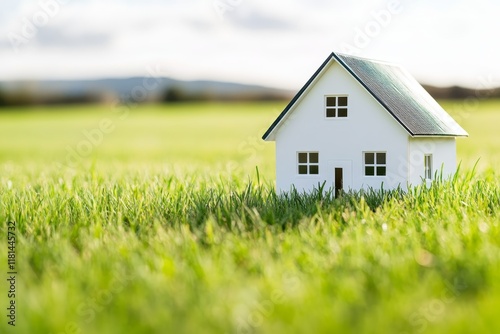 miniature, house, green, grass, rural, setting, clear, sky, daylight, landscape, small, peaceful, nature, property, home, model, sunny, day, idylli, architecture, foreground, calmness, environment, countryside
