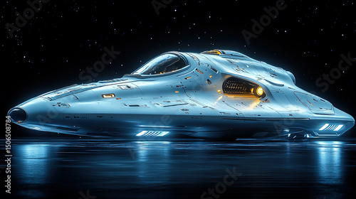 Miniature spaceship model isolated on a flat dark background, perfect for sci-fi themes, space exploration, futuristic design, and creative or educational visuals.