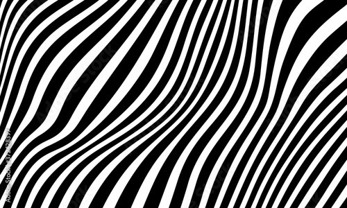 Minimal abstract black and white background. Black wavy lines pattern. Optical art, opart striped. Modern waves, geometric line stripes. vector illustration