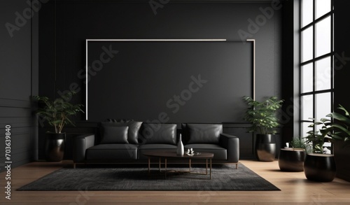 Minimal black background on Room in the 3d. For backdrop, Space for product and text from AI Generative