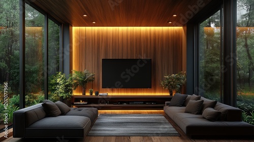 minimal cabinet for TV setup on a feature wall, featuring a low-profile design with a smooth