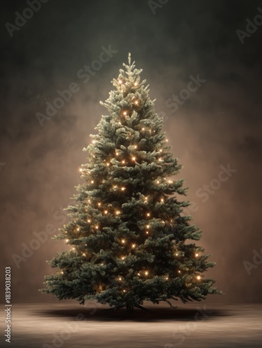 christmas, tree, pine, fir, spruce, light, glowing, warm, festive, holiday, winter, decor, decoration, minimalist, minimal, cosy, elegant, simple, calm, atmospheric, evening, celebration, new year, illumination, sparkle, gold, soft, neutral, background, interior, season, tradition, christmas