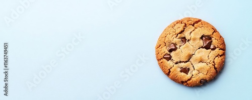 Minimal cookies idea. Delicious chocolate chip cookie on a pastel blue background.