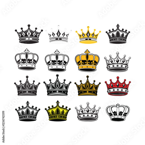 Minimal Cute Crown Set Vector Art Design Illustration