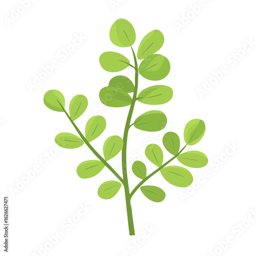 Minimal flat vector of a Moringa, 2D icon-style illustration on white background