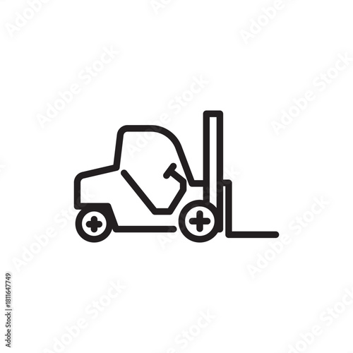 Minimal line-art forklift icon representing warehouse logistics, material handling, and industrial operations. Ideal for supply chain guides, safety manuals, equipment training, and transport design.