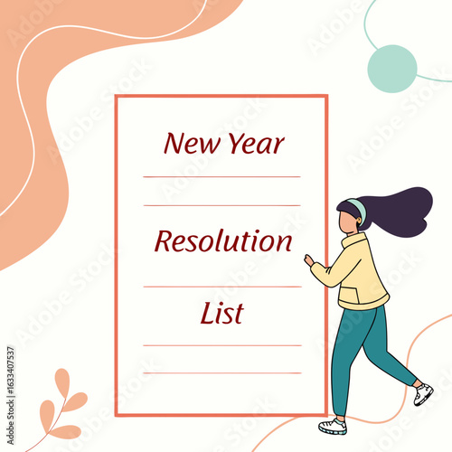 Minimal New Year resolution list vector with clean layout, checkboxes, and abstract background
