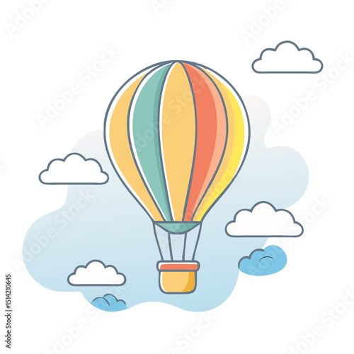 balloon, air, sky, hot, vector, travel, fly, illustration, cloud, hot air balloon, basket, fun, flying, cloud, transportation, balloon, transport, adventure, colours, colourful, up, cartoon, freedom, summer, art
