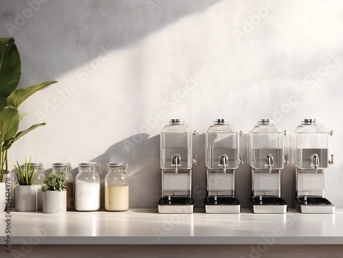 Minimal refill station with reusable glass containers