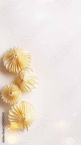 new year, ornament, holiday, paper, festive, minimal, christmas, decoration, new, aesthetic, year, celebrate, gold, white, beige, minimalistic, decor, winter, monochrome, scandinavian, light, yellow, art, ball, stylish, decorative, hand-made, background, pattern, shine, collection, christmas ornament, topview, bokeh, christmas, wallpaper, happy, story, contemporary, shape, vertical, happy holiday, delicate