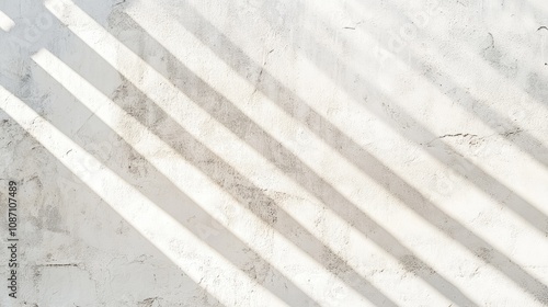 Minimalist abstract background showcasing soft, elongated silver rays casting gentle shadows on a textured white wall, creating a serene and elegant ambiance.