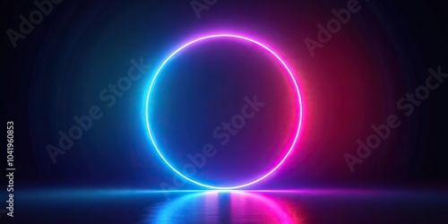 Minimalist abstract background with a glowing futuristic neon circle outline