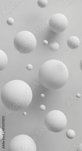 Minimalist abstract background with floating white 3D spheres.