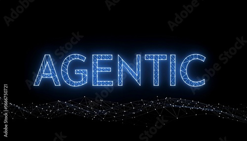Minimalist AI design with glowing "AGENTIC Ai" text in white mesh lines on black background, futuristic high-contrast geometry digital abstract concept.