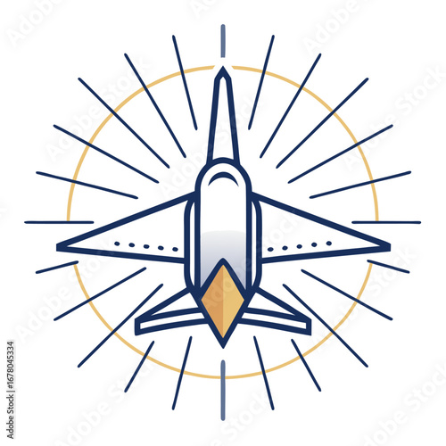 Minimalist Aircraft Icon with Geometric Sunrays and Clean Sans-Serif Text for Corporate Aviation Branding