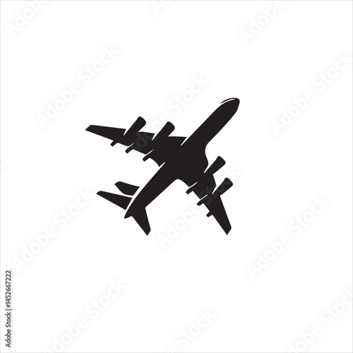 Minimalist Airplane Silhouette – Black and White Vector of Commercial Jet with Clean Lines and Sleek Aviation Design