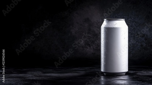 Minimalist aluminum beer can with blank label on dark background for branding mockup and design ideas