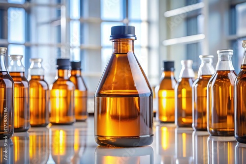 Minimalist Amber Liquid Bottles: Material Science Lab Testing