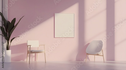 Minimalist and Modern Empty Room with Geometric Furniture and Decor Elements