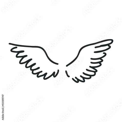 Minimalist angel wings line art design with open feathers – stock vector icon in line drawing style