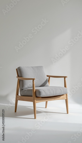 armchair, furniture, minimalist, grey, wood, modern, interior, design, seating, home, decor, stylish, comfortable, contemporary, living room, upholstery, cosy, elegant, simple, aesthetic, lounge, chair, craftsmanship, quality, scandinavian, natural, light, space, clean, line