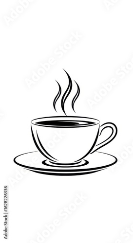 hot drink, cup, steam, aroma, beverage, hot, drink, caffeine, saucer, simple, graphic, line, drawing, vector, art, illustration, design, icon, symbol, outline, monochrome, isolated, black, white, element, minimal, freshness, relaxing, template, tasty, morning, breakfast, eatery, cafes, shop, menu, coffee break, energizing, stylised, artistic, abstract, decorative, classic, elegant, delicious, espresso