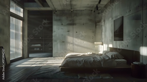 Minimalist Bedroom Interior Design With Concrete Walls And Natural Light