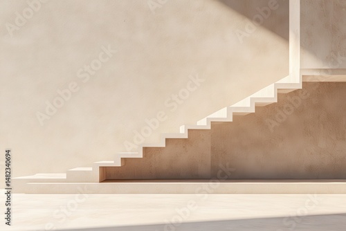 minimalist, beige, interior, staircase, step, concrete, wall, light, sunlight, modern, architecture, design, empty, neutral, simple, clean, geometric, modernist, contemporary, elegant, empty space, calm, peaceful, serene, space, upward, progress, elevation, vertical, horizontal, symmetry, bright, illuminated, smooth, texture, cream, off-white, natural light