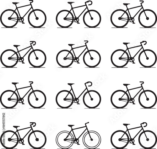 Minimalist Bicycle Icon Set 12 Unique Line Art Bike Vector Illustrations for Web, App, UI Design, Print, Logos, Infographics, and Cycling-Themed Branding Projects