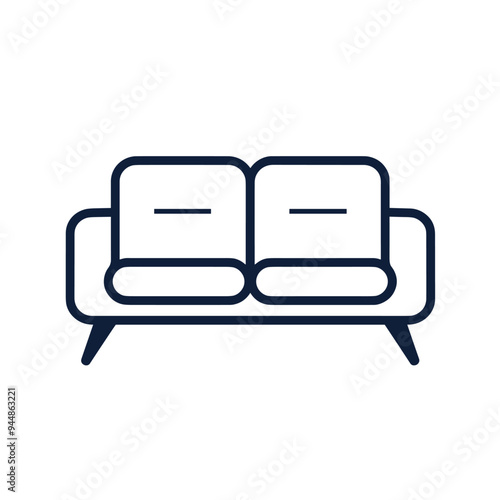 Minimalist black and white icon of a modern two-seater sofa with simple lines and cushioned seats.
