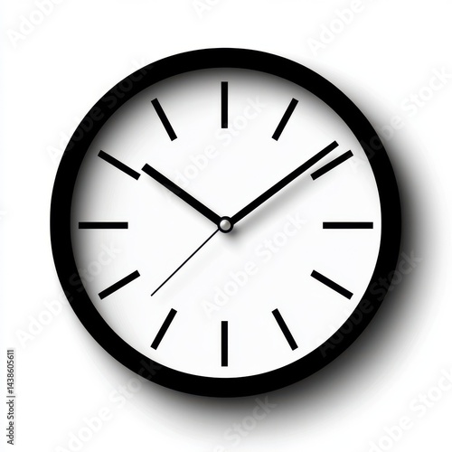 clock, wall clock, time, minimalist, simple, black, white, hours, minute, second, analog, round, design, modern, office, home, isolated