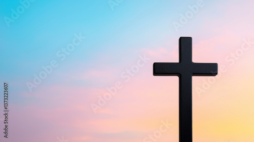 Minimalist black cross silhouette against soft gradient sky