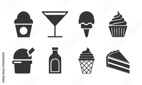 Minimalist Black Silhouette Food & Drink Icons – Ice Cream, Cocktail, Cupcake & More