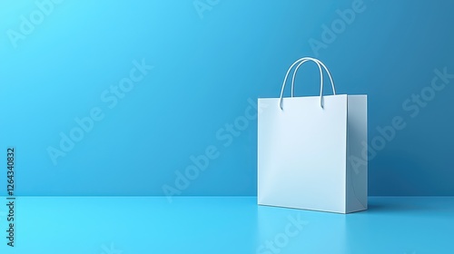 Minimalist blue shopping bag on vibrant blue background for retail and ecommerce concepts