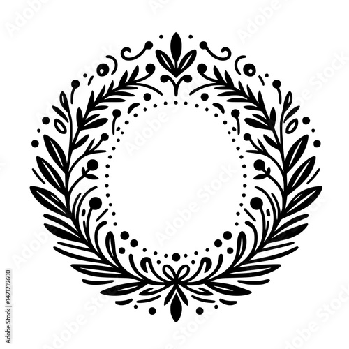 vector, chaplet, floral, botanical, design, illustration, black-and-white, minimalist, leaf, foliage, circle, frame, elegant, wedding, invitation, greeting card, nature, ornament, decorative, graphic, simple, art, flourish, outline, hand-drawn