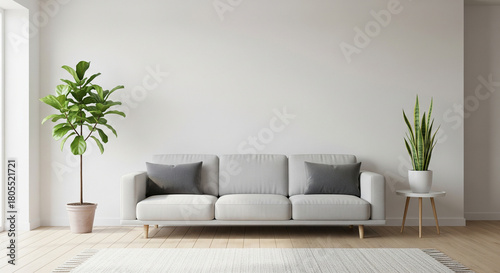 Minimalist Bright Living Room with Sofa and Potted Plants Interior Design