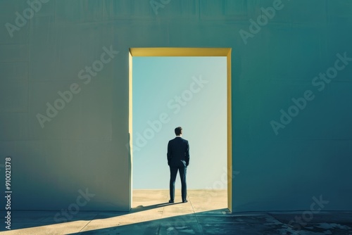 person, businessman, business, doorway, concept, door, room, wall, entrance, human, success, design, opportunity, inside, freedom, indoor, man, idea, leaving, interior, open, creativity, leadership, entering, silhouette, shadow, home, abstract, forward, white, concrete, building, dark, light, male, alone, standing, dream, render, wooden, marketing, imagination, adult