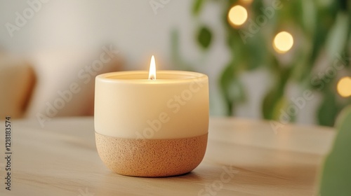 Minimalist Candle on Table with Soft Background and Warm Glow