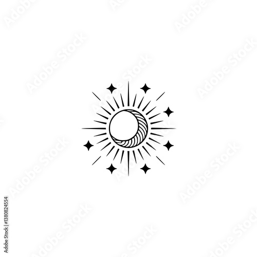 vector, moon, star, sun, celestial, minimalist, line art, black-and-white, logotype, design, illustration, geometric, simple, astronomy, cosmos, night sky, astrology, spiritual, emblem, tattoo, branding, celestial bodies, esoteric, bohemian, graphic design