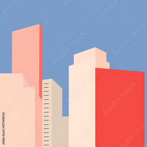 city landscape, city, urban, architecture, building, modern, minimalist, geometric, abstract, graphic design, illustration, vector, simple, clean, contemporary, sky, blue, pink, red, white, light, colours, design, pattern, shape, style, background, wallpaper, poster, art, artwork, interior design, decor, print, digital artwork, graphic, design element, composition, modern architecture, building exterior, skyline, city landscape, city view
