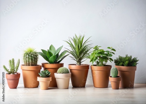 Minimalist Collection of Potted Plants in Terracotta Pots Against a Clean White Background for Home Decor Inspiration