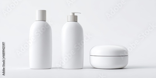 cosmetic, container, bottle, jar, white, minimal, clean, skincare, beauty, product, cardboard box, dispenser, cream, lotion, hygiene, salon, spa, health, wellness, modern, simple, studio, blank, empty