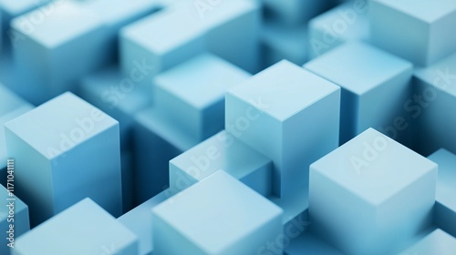 Minimalist design of soft blue 3D cubes in an abstract isometric perspective, with attention to smooth gradients and subtle highlights. The HD image captures the refined details.